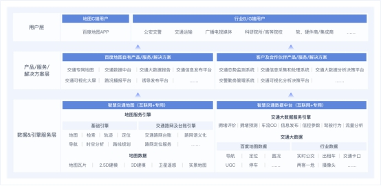 正是基于百度地图的交通大数据和专网地图的技术能力,百度地图智慧交通已构成“两个核心引擎+N个产品服务”的能力全景。基于地图数据构建的地图服务引擎,以及基于交通大数据构建的交通大数据服务引擎(即交通大数据中台),是智慧交通业务的两个核心引擎,其上承载了百度地图自研以及合作伙伴研发的产品、服务和解决方案,并最终向公安交警、交通运输、广播电视媒体、科研院所、高等院校、软硬件以及集成商等客户提供服务。