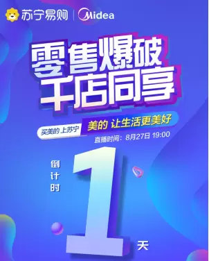 不断深化的合作凸显了美的品牌对零售云的强大信心,零售云也始终致力于推动头等舱合作伙伴更快、更高效地在县镇市场完成下沉。为了帮助美的生活电器达成这一目标,苏宁零售云携手美的计划于8月27日开展覆盖千店的全国联播活动。