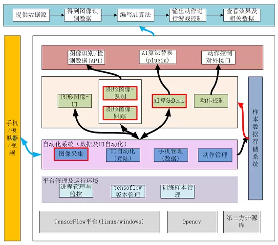 AI SDK 平台是一个基于游戏图像来开发游戏 AI 的开源工具包。工具包主要完成了 UI 检测、游戏内元素识别、AI 算法(DQN、IM)等功能。开发者可以基于此工具包完成游戏自动化测试。