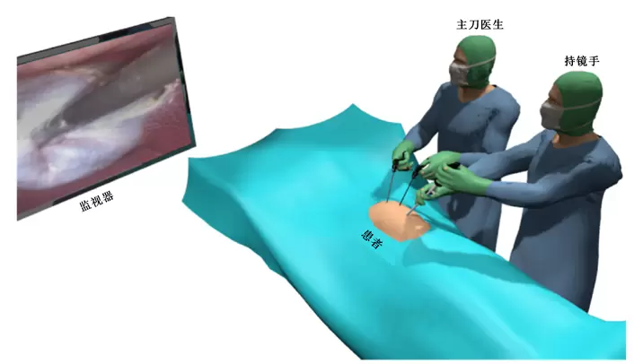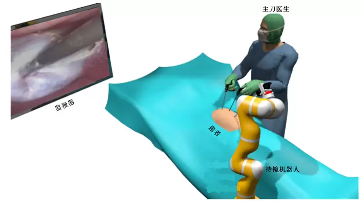 如图1所示,腹腔镜手术中除了主刀医生,必须配置一位持镜手为主刀医生提供相应的照明和最佳的视觉反馈,因此持镜手的工作非常重要,可谓主刀医生的“眼睛”。但腹腔镜手术过程中,持镜手容易受疲劳、手部震颤、注意力分散等影响,乃至与主刀医生有效沟通困难(尤其对于初学者),直接导致手术效率下降。