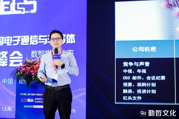 联软科技副总裁张建耀从现今中美对抗的国际环境引题,向与会嘉宾讲述了数据泄密的几种通道,通过分享了几大重要企业数据安全保护的案例,向大家阐述了企业数据安全保护的解决方案。