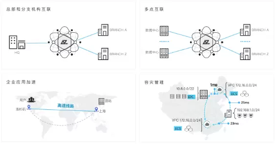 观脉AllWAN网络解决方案,融合专线网络的稳定性和互联网的经济性,通过构建专属虚拟网络,解决实时传输中的瓶颈,在全球范围内,跨地域、跨网络使用,可以将企业网络延伸到任何有Internet连接的地方。在游戏全球同服、在线实时音视频互动、混合云互联、多点互联,企业应用加速、容灾管理等多种场景被广泛使用。企业用户可以灵活开通并使用该产品,便捷迅速的进行全球布署,即开即用,全球通达。