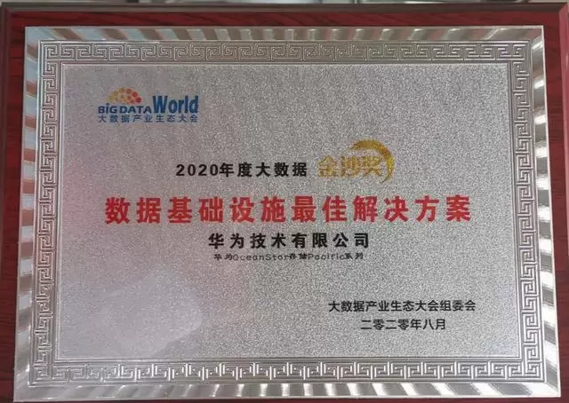 8月26日,为期两天的"2020(第五届)大数据产业生态大会"在北京新世纪日航酒店盛大开幕,激起了大数据产业新的一轮浪潮。工业和信息化部信息技术发展司副司长杨宇燕,中国科学院院士、大数据产业生态联盟主任委员梅宏,中国工程院院士倪光南等专家领导出席了大会论坛。经过组委会一致评议,华为OceanStor Pacific系列海量存储荣获"数据基础设施最佳解决方案"奖,这是对华为海量存储海纳数据,加速企业数字化转型能力的极大肯定。