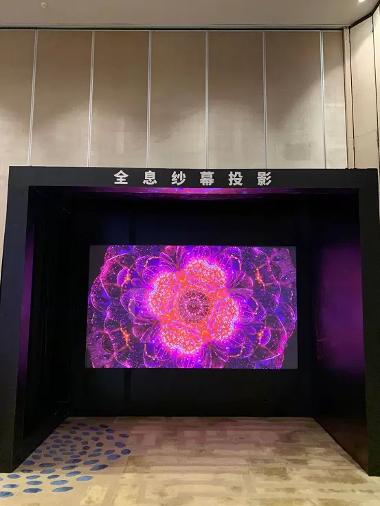 全息纱幕投影被应用于各类展馆设计、舞台演出、商业街等领域,特别是在舞台演出应用中,以逼真影像配合演员的表演,让演出效果更具观赏性。推广会现场,采用哈勃新品搭配超短焦反射式镜头进行的背投方案,营造了视觉沉浸感强烈的舞台艺术空间。哈勃系列的PA1004UL-B+ 投影机拥有10000流明高亮度及1920×1200分辨率,即使在高透光的纱幕上也能确保画面依然靓丽,色彩鲜艳饱满。