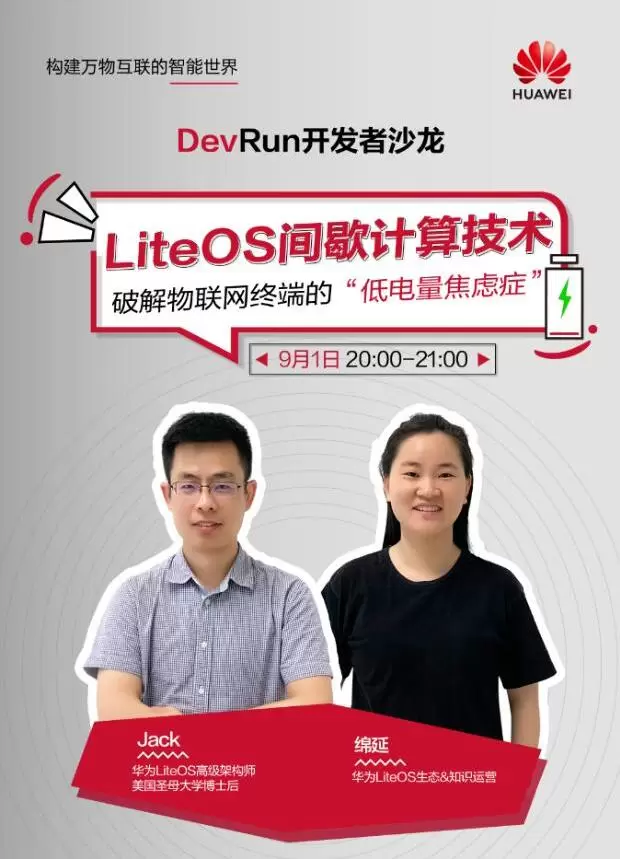 能量采集场景都在户外,甚至可以说是无人区域,当设备放置(部署)后,没办法及时回收和维护,比如放置在动物身上的设备,位置是不固定的,无法及时为终端设备进行充电和供电,如何让能量采集设备几个月甚至几年长时间的工作,实现能量收集。9月1日晚上20:00-21:00,华为DevRun开发者沙龙为您破解物联网终端的"低电量焦虑症"。参与论坛盖楼活动还能赢取豪礼哦~