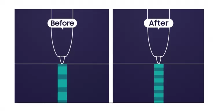 此外,三星还升级了SPen“隔空手势”功能,用户可利用全新的5种手势实现对设备更多“权限”的遥控操作,令体验不再局限于远距离拍照、控制视频播放进度等方面。新增的手势中,右侧弧形手势(>)即显示最近使用的应用程序;向上拱形手势(∩)则可以返回主屏幕;左侧弧形手势(<)即返回;向下拱形手势(∨)则能够运行智能多截图。用户还可“摇一摇”S Pen开启“截屏编写”功能,实现即时截屏并使用S Pen进行注释。这种“一笔在手、天下我有”的体验对于职场人士而言无疑带来了极大的便捷。