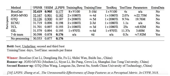 (百度拿下NTIRE2020挑战赛视频质量映射赛道冠军)