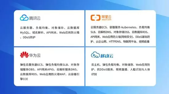 腾讯云、阿里云、华为云和移动云通过测评的云服务