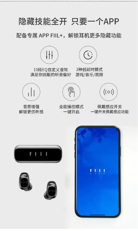 此外,FIIL T1 Pro同样支持使用FIIL+APP。FIIL T1 XS通过"FIIL+"APP,即可实现手机操控,支持iOS系统及Android系统。