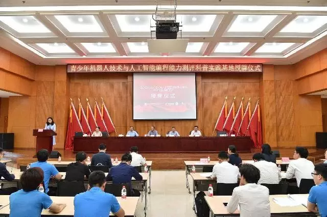 ▲青少年机器人技术与人工智能编辑能力测试首批授牌的科普实践活动基地