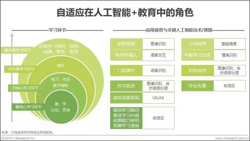 教育领域的几个最重要的因素:学生—内容—学习,构成了这一领域天然的完整闭环:学生对内容的学习,实际上是用户制造数据的场景,而教育领域由于其高度粘性,场景产生的数据反过来又能反馈用户。人工智能技术出现,让以学生为核心的个性化教育成为资本、技术、市场追捧的对象。而个性化教育中,智适应学习成为一个重要的突破口和成熟的实践路径。