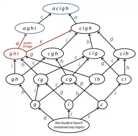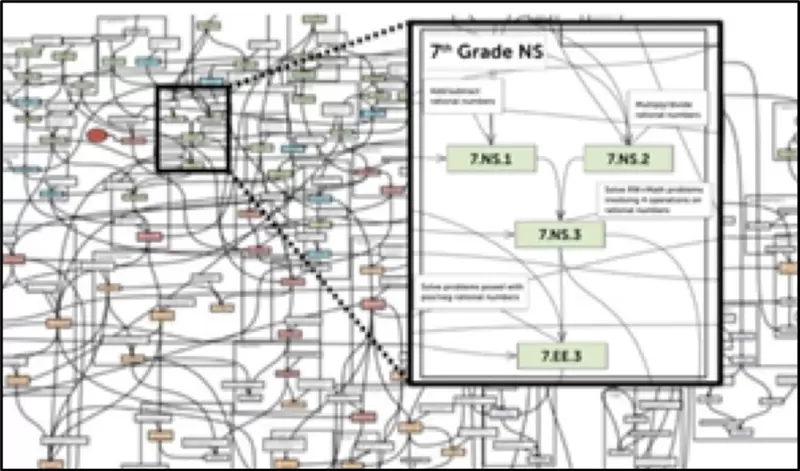 知识图谱控制了大部分学生的学习。 虽然学生通常会得到多个可以进行下一步学习的知识点的选择,但许多知识点也被分为已掌握的(在这种情况下,学生在该知识点上努力是浪费时间)或者未掌握,未准备好可以学习的(在这种情况下,由于学生没有掌握学习的先决条件知识,所以学习这个知识点是浪费时间)。 通过这种方式,ALEKS为学生提供了一个强大的适应性学习环境,涵盖了学生学习的“甜蜜点”(既不困难也不太容易)的知识点。一般来说,当ALEKS为学生提供一个新的知识点时,他们平均成功率达到95%。