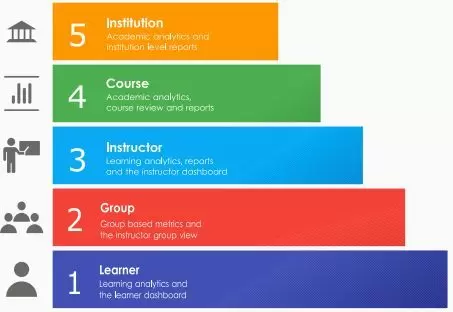 4. Realizeit收集关键数据点,采用学习分析法将商业智能方法和策略用于教师和教育机构的分析,不仅可以帮助教师进行学习者分析和评估学生,利用学习者(作为评估结果)和新型算法、工具之间的联系,确保迅速获取学生能力和学习过程的整体概况,以便随时可用,实现教学定制化;还可以帮助教育机构收集不同层级的课程、学校、部门和机构数据,从而提供实时的学习状态浏览以及各层级的信息,从而引导其作出正确的决策。