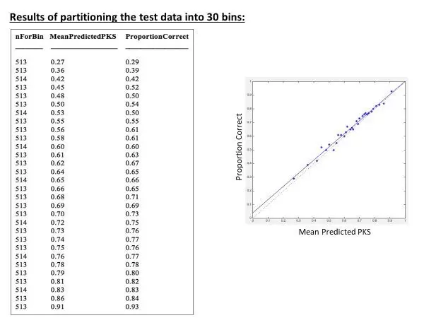 这个PKS在我们的实验数据中得到预测效果是非常好的,76个学生相关的结果,一共1500个题的作答结果我们采用相关的参数来预测的PKS,通过数据分组,把我们排好序的PKS进行分组校验。