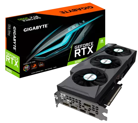 2020年9月,技嘉科技与NVIDIA一同发表最新一代采用NVIDIA Ampere架构的GeForce RTX™ 30系列GPU,技嘉首先推出Geforce RTX™ 3090 GAMING OC 24G, Geforce RTX™ 3090 EAGLE OC 24G, Geforce RTX™ 3080 GAMING OC 10G, Geforce RTX™ 3080 EAGLE OC 10G等4款显卡。4款显卡都采用了技嘉风之力三风扇正逆转散热系统、独特刀锋导流造型风扇、纳米石墨烯润滑油、进气格栅散热技术、超大铜板与复合式热管散热、RGB fusion 2.0炫彩灯光、造型金属强化背板、与技嘉认证超耐久用料,让所有玩家都能在稳定运作的状况下,享受超频显卡带来的流畅游戏体验。