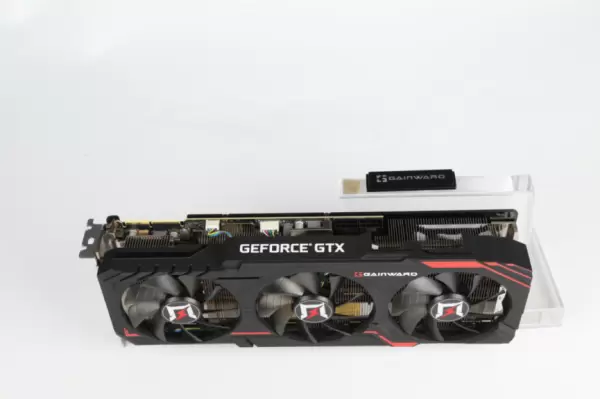 背板则使用全新异形金属背板穿透视散热系统,在异型金属背板的右方采用大面积镂空设计,配合随包装附送的8公分抽出式背板风扇,利用背板风扇把热力抽出,大幅加强了显卡的散热能力。