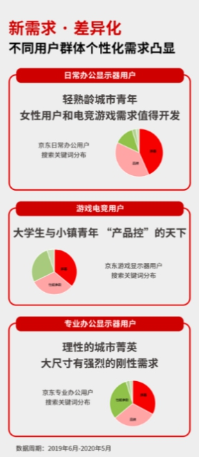 以往传统的商业模式为降低成本,追求的都是大批量、规模化的爆款产品,但随着消费升级和用户消费理念的转变,个性化产品越来越受到消费者的青睐。白皮书显示,不同用户群体的个性化需求逐渐凸显,电竞游戏需求与大尺寸显示器需求日益增加,也在反向推动厂商生产变革。
