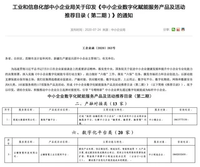 工业和信息化部《中小企业数字化赋能服务产品及活动推荐目录》