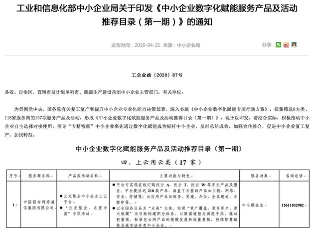 近日,工业和信息化部相继印发了《中小企业数字化赋能服务产品及活动推荐目录》第一期和第二期的通知。中国联通凭借多项成果成功入选推荐目录,成为工信部推荐的中小企业上云用云首选服务商。