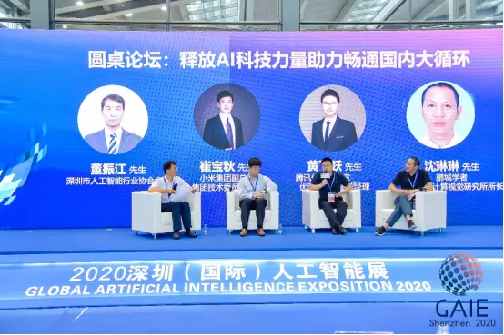 而腾讯优图实验室副总经理黄飞跃也出席了本次大会,在以“释放AI科技力量助力畅通国内大循环”为主题的圆桌论坛上,与深圳市人工智能行业协会会长董振江;小米集团副总裁、集团技术委员会主席崔宝秋以及鹏城学者,深圳大学计算视觉研究所所长沈琳,一起共话人工智能在国内大循环中扮演的角色与价值。