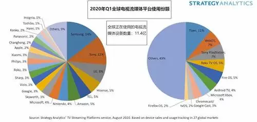 - 全球电视流媒体设备数量达到11.4亿,三星领先