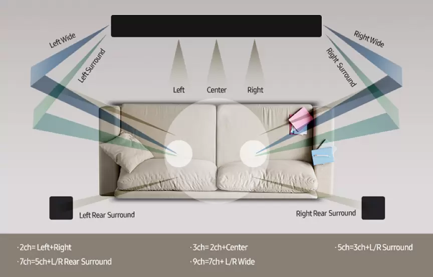 动态环绕音效,让扬声器与条形音箱和谐共存