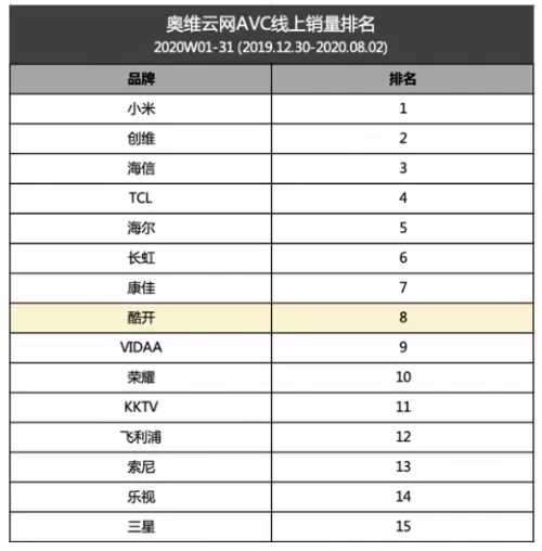 调整之后,无论是专注于内容生态的酷开网络,还是被并入到创维体系、保持品牌独立运营的酷开电视,都得到了更好的发展。背靠创维品牌的优势和支持,酷开网络系统累计激活终端用户已经超过6000万量级。而酷开电视在2020年H1AVC线上销量全网排名第8,在互联网电视品牌排名第2(数据来自奥维云网)。二者在数据端均表现优秀,这也显示了酷开电视独立出道,打造“创维+酷开”双品牌战略的成功,为接下来酷开网络和酷开电视在各自领域的进一步发力奠定了基础。
