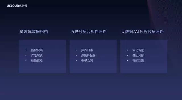 企业要想经营下去须做两件事:开源与节流,成本控制的重要性不言而喻。UCloud新一代归档存储在多媒体数据归档、历史数据合规存储,以及大数据、AI分析数据归档这三大类数据归档存储方面有着广泛的应用场景。存储体量越大,带来的成本变化也就越大。
