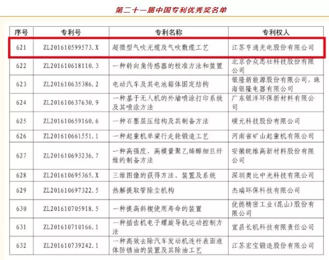日前,国家知识产权局对第二十一届中国专利奖进行授奖,亨通集团旗下亨通光电获评2项中国专利优秀奖、亨通光导获评1项中国专利优秀奖。此次获奖是对亨通技术创新实力和高质量发展创新成效的权威认可。
