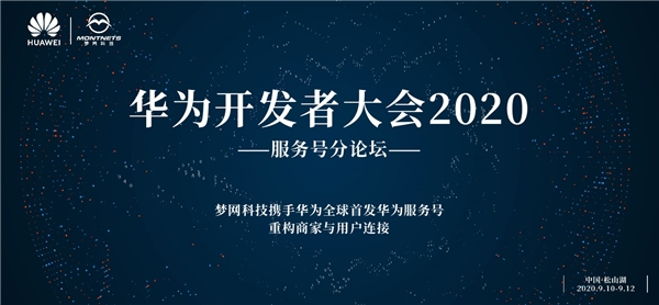 9月10日-12日,华为开发者大会2020(Together)开发者大会将在东莞松山湖举办。本次会议将分享HMS Core 5.0服务生态最新进程,揭开鸿蒙系统2.0版本和EMUI 11的神秘面纱。此外,大会还将带来主题演讲、技术论坛、松湖对话、Codelabs、Tech.Hour、互动体验等六大模块。其中由华为联合梦网科技重磅推出的华为服务号,也将在9月11日的服务号分论坛中正式面向全球发布。