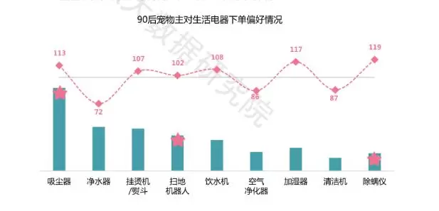 现在的单身青年早已不为独自一人相处而头秃,他们在"猫娃"和"狗娃"身上,找到了陪伴、互动和依赖。《白皮书》显示,90后是目前主要养宠人群,且是高消费群体的主力军。作为合格的铲屎官,他们喜欢为宠物做投入。比如买家电,会把清理宠物毛发列入重要的考虑因素,清扫功能丰富的除螨仪、吸尘器和扫地机器人就成了下单偏好较高的品类。
