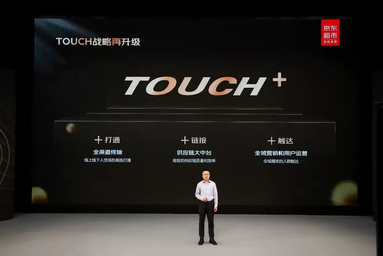 发布会上,京东零售集团大商超全渠道事业群消费品事业部总经理刘利振对外宣布,对去年京东超市“TOUCH” 战略全面升级,推出“TOUCH+”战略——即用全渠道终端打通线上线下的人货场;链接供应链前端,打造极致的供应链质量和效率;运用精准的全域营销和用户运营触达消费者端。