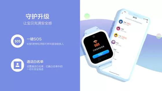 以防意外,家长可以提前教会孩子使用萤石儿童可视安全手表的“一键SOS”功能,只需长按5秒手表上的SOS键,即可呼叫紧急联系人,家长可在孩子危急第一时间进行救助。