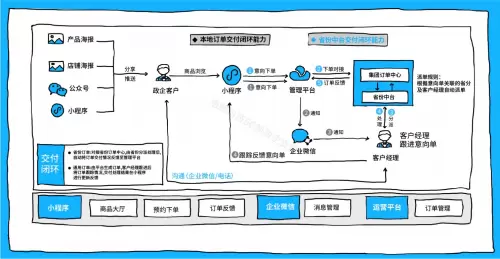 订单跟进:通过多种渠道引流后,促成客户订购,并通知客户经理,由客户经理跟进处理。