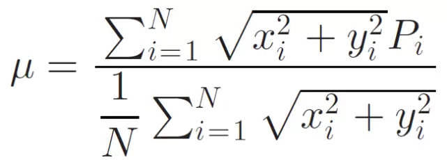 其中,{x_i, y_i}表示压电传感器 i 相对于质心的坐标。上式中分子是每个压电传感器对腕部总测量力矩的贡献之和,分母是压电传感器和质心之间的平均距离。对分子进行标准化处理,以便在具有不同接触面积值的数据之间进行更好的比较。标准化力矩由下式得出: