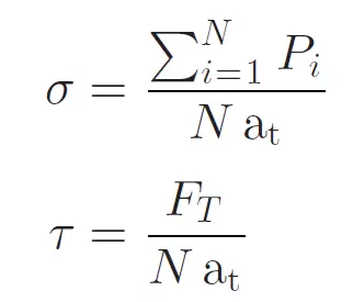 摩擦力通常有两种:一个是由于分子的吸引力和迟滞,另一个是由于分子相互碰撞造成的。前者是一种粘附控制元件,它取决于分子尺度上的实际接触面积。后者是一个负载控制部件,它依赖于法向力。对于大多数硬材料,前一部分可忽略不计,后一部分提供了最大摩擦力,该摩擦力随施加的载荷线性增长。具体见下式: