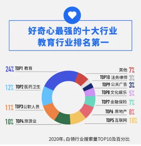 调查显示,中国约有2.5亿白领网民,这一庞大的群体一直是社会的焦点,而白领们又在关注着什么呢?近日,百度发布《2020国民好奇心大数据之职场白领好奇心大揭秘》,基于用户行业标签与搜索大数据分析,洞察各行各业白领的好奇心。