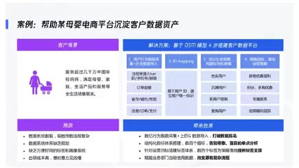客户数据平台是可以快速连接来自市场、销售、客服等各部门的各类数据源中存储的客户数据。就如电商平台在营销过程中,会遇到数据系统割裂、取数用数的流程复杂,数据系统体系缺乏规划、标签和画像系统的缺位等等问题。