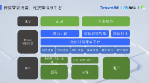 腾讯小微是一套微信AI团队开发的智能服务系统,也是一个智能服务开放平台。借助微信智聆和微信智言在语音识别和自然理解等领域领先的研究成果,接入腾讯小微的系统和硬件可以快速具备听觉感知能力和智能对话能力,从而帮助硬件厂商实现更智慧的人机交互。作为微信对话开放平台与AIoT生态相结合的产品,“腾讯小微”本身的产品路径与形态,使它成为了连接微信生态内的大量服务内容与外界生态之间“最坚固的桥梁”。