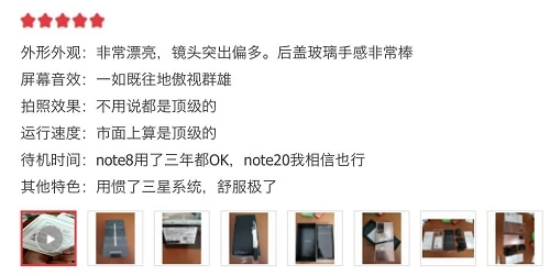 (以上图片截取自京东三星手机官方旗舰店消费者点评)