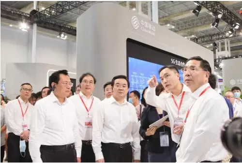 浙江省副省长高兴夫,宁波市委副书记、市长裘东耀等领导在中国移动副总经理赵大春和浙江移动总经理郑杰的的陪同下参观了以“5G融入百业,驱动数字宁波”为主题的中国移动展区。