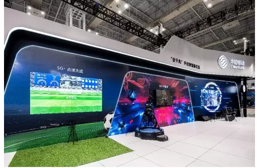 在互动娱乐体验区,5G黑科技“玩”出了意想不到的新花样。点球大战互动区前,5G体感摄像头在出脚瞬间识别了脚力度、方向,根据足球自转速度计算足球轨迹,精准分析是否进球;VR游戏区,两名玩家戴上VR眼镜、站上万向跑步机,身临其境CS对战,游戏画面通过5G网络实时同步至大屏幕;AR乐队体验区,坐在架子鼓前,AR设备将现场实景匹配到大屏幕上,组成“完美乐队”,尽情敲打过把开演唱会的瘾。