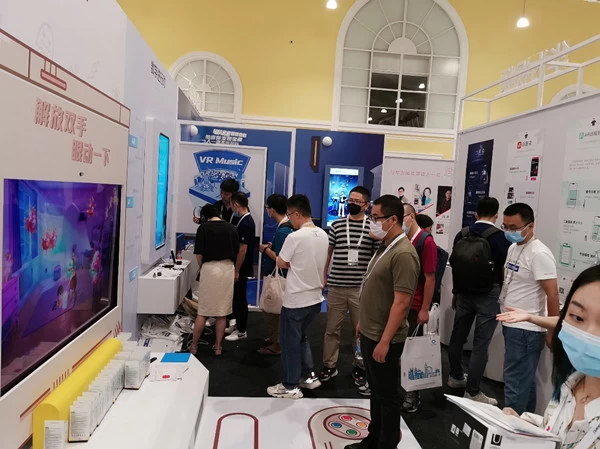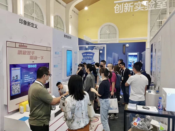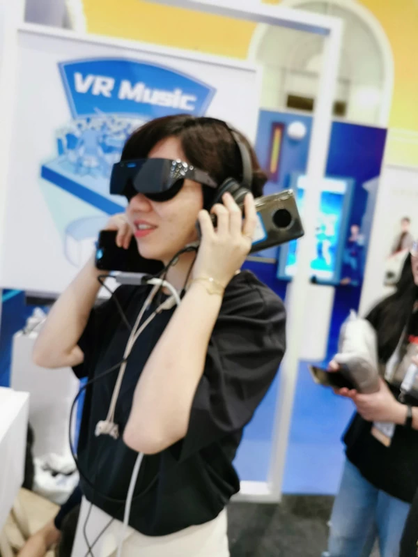 “数字进行时”探索区的VR音乐是一款基于VR技术延展的新应用,用户戴上VR眼镜,即刻化身乐队主唱,沉浸嗨唱现场,台上聚光灯照亮C位,台下观众热情似火,在360°VR全场景中,享受歌迷们的呼唤,引吭高歌,体验“真明星”的全新感受。