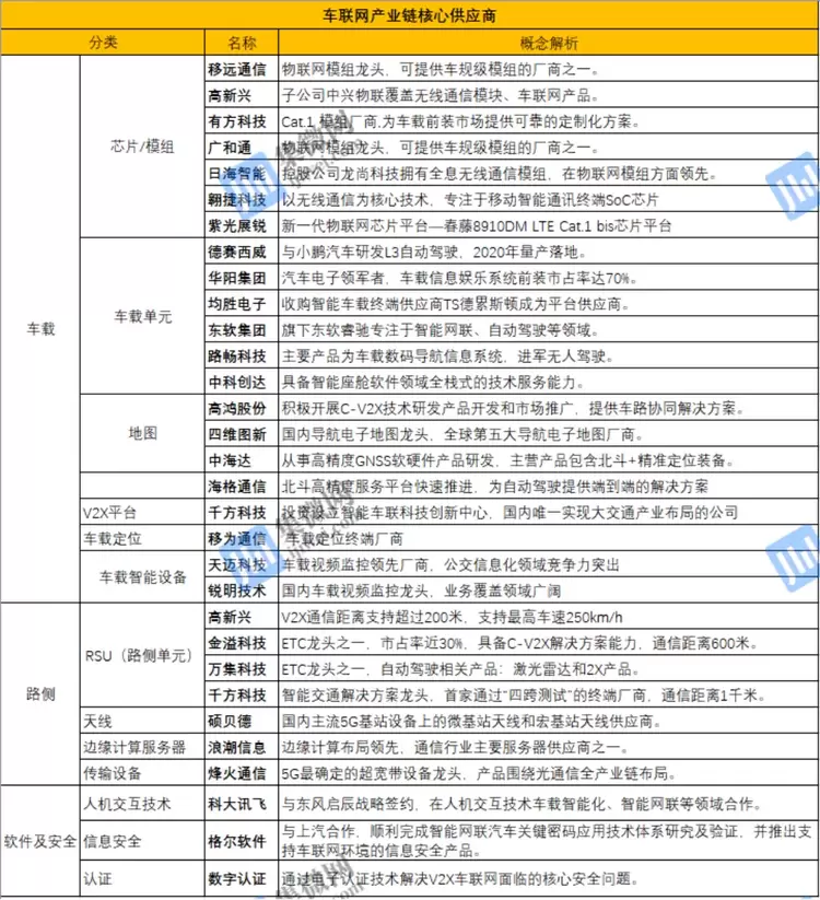 从上表来看,目前布局车联网产业链的上市公司已经有超过20家,其中模组厂商以移远通信、广和通、有方科技为主,芯片厂商翱捷科技和紫光展锐也已经启动上市辅导。
