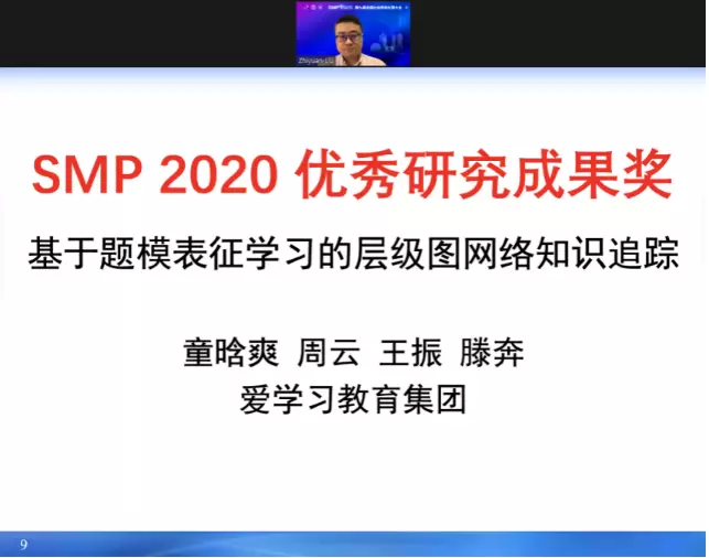 清华大学刘知远教授在大会闭幕式上宣布爱学习AI Lab学术论文荣获“SMP2020优秀研究成果奖”