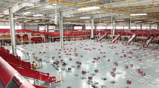 京东智慧化无人仓内,分拣AGV正在繁忙运行