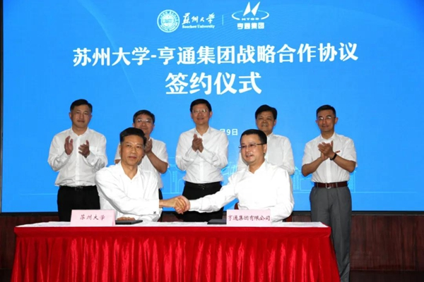9月9日,亨通集团与苏州大学战略合作签约仪式在苏州大学举行。苏州市委副书记、市长李亚平出席并见证,苏州大学党委书记江涌,校长熊思东,吴江区委书记李铭,亨通集团董事局主席崔根良、执行总裁钱建林等出席。苏州市委市政府、吴江区委区政府相关领导,苏州大学及亨通集团各有关负责人参加签约活动。