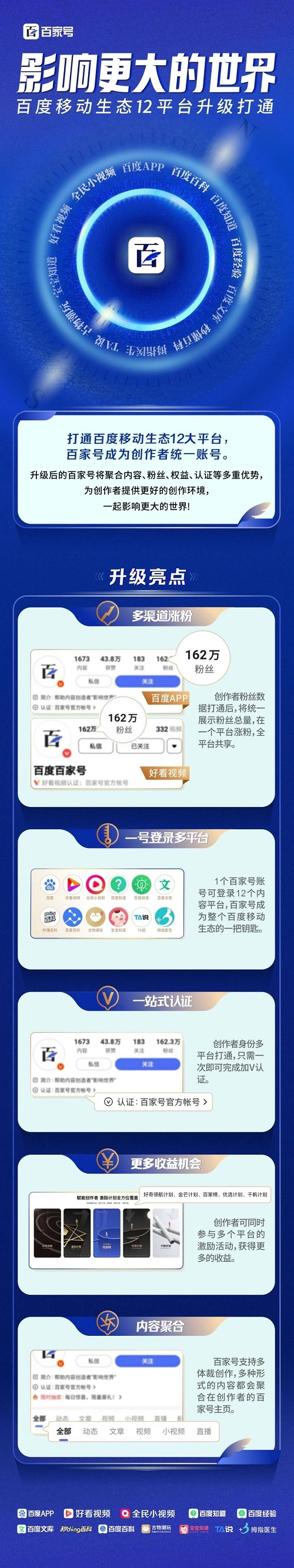 - 百家号宣布品牌升级:百度移动生态创作者账号体系全面打通