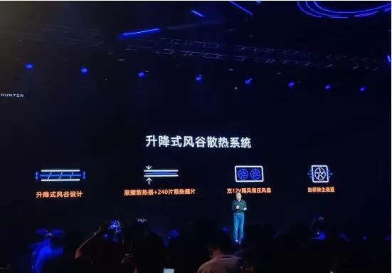 在相同的硬件配置下,散热能力则直接影响了游戏本的实际性能表现。为了更进一步的提高散热的效果,同时满足锐薄,荣耀猎人游戏本V700采用升降式风谷设计,在关机合盖的状态下,散热板收回,持续保持了锐薄的机身;而在打开屏幕的同时则自动打开底部风谷通道,形成8.5mm的进气立体风谷,相比较未打开升降式风谷的荣耀猎人游戏本进气量提升40%。