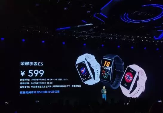 荣耀手表ES售价599元,现在预订到手价 549 元,9月16日至22日开启预售,9月23日正式开售。